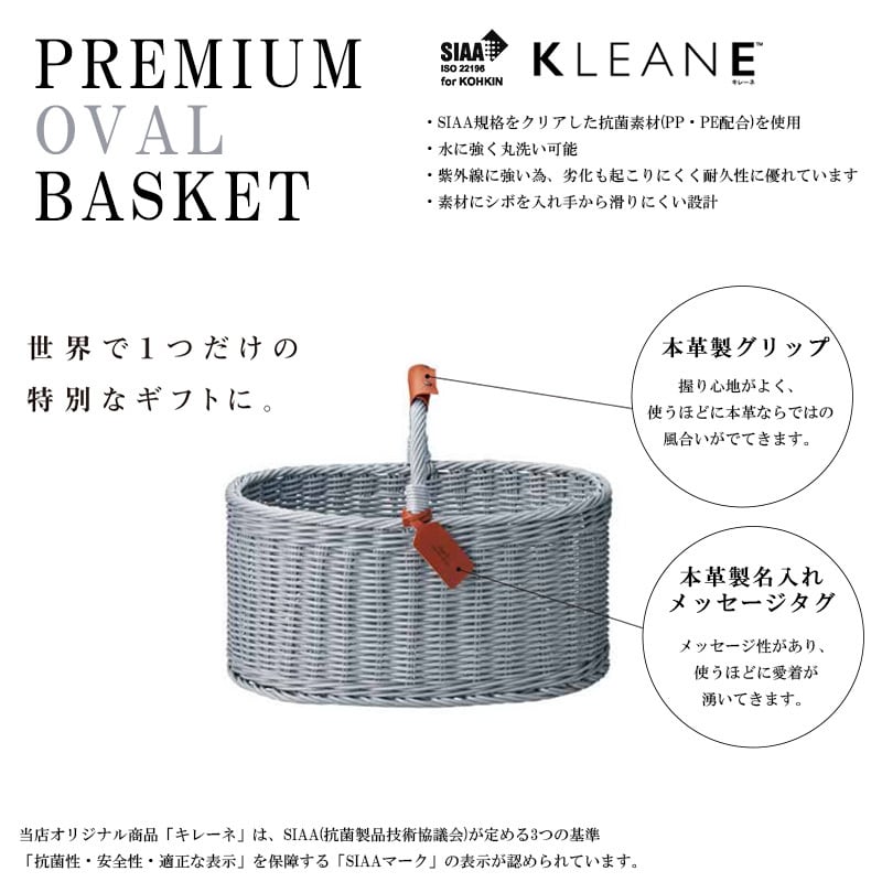 抗菌バスケット オーバルバスケット レザー グリップ メッセージタグ 名入れ ピクニックバスケット かご SIAA規格 丸洗いOK[3P011-leather]