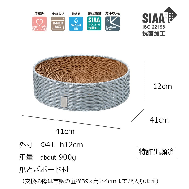 洗える超抗菌素材のキャット用爪とぎベッド(爪とぎボード付)【キレーネ プリュス】